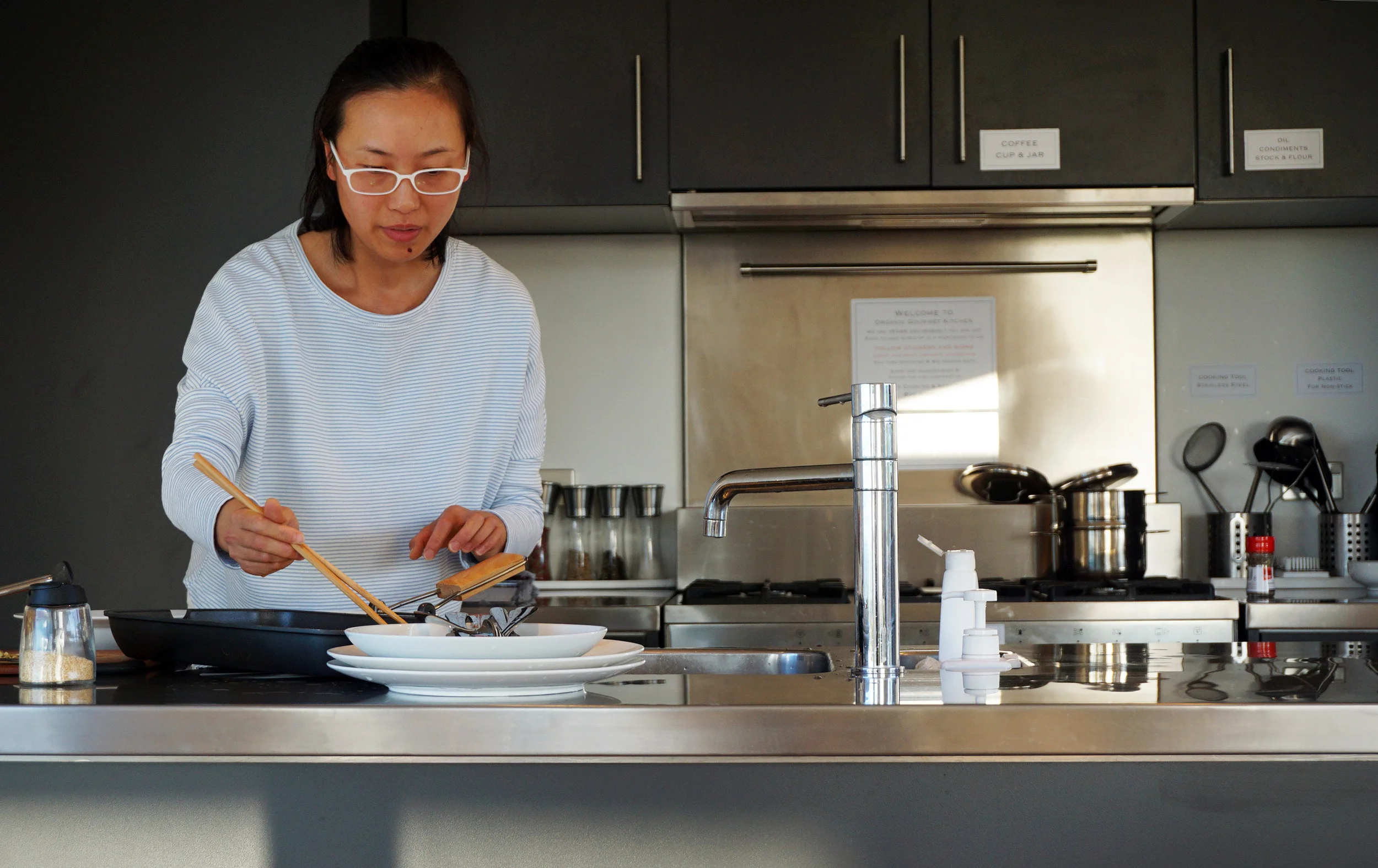 Na profilu Airbnb Sihao zaciekawiła mnie możliwość zamówienia kolacji wegańskiej, którą sama przygotowuje z najlepszych produktów. Oczywiście od razu z tej możliwości skorzystałam, będąc pierwszą, na pewno nie ostatnią z jej gości. Decyzja była trafna, zostałam obdarzona pysznymi dziełami sztuki, perfekcyjnymi pod względem kompozycji, doboru kolorów i smaków. Miałam szczęście dzielić z Sihao nie tylko wspaniały posiłek ale również prowadzić głębokie rozmowy o sensie życia i filozofii buddyjskiej. To była czysta przyjemność przebywać z osobą, której własne wnętrze jest nie mniej harmonijne niż to w którym mieszka.